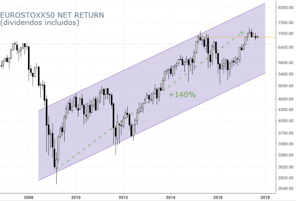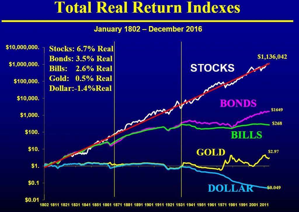 Cuando las bolsas mundiales están en máximos históricos después de más de 10 años subiendo (y marcando un récord de duración de ciclo alcista en el caso de la bolsa de EEUU), es momento de recordar e insistir en la absoluta superioridad de las acciones frente a