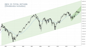 Las bolsas europeas están a punto de meterse en situación técnica de «subida libre», es decir, a punto de situarse por encima de cualquier resistencia relevante reciente, ya sean máximos de 2017, de 2015, de 2007 (gran techo del ciclo anterior), o simplemente más históricos. Incluso el denostado IBEX
