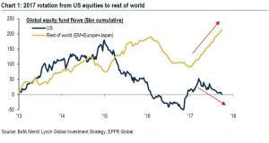 En el último post vimos que no está entrando dinero en los fondos de RV, lo cual es muy llamativo teniendo en cuenta que los índices de EEUU y Europa están en máximos, y subiendo. El rebote de septiembre en DAX y CAC comenzó con la mayor salida de flujos de los fondos europeos desde marzo, como vemos en el siguiente gráfico